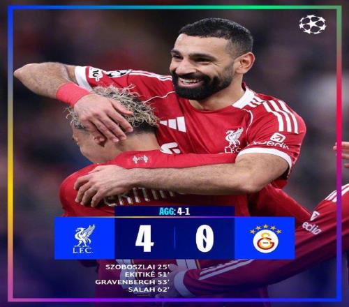 第62分钟,萨拉赫完成了属于自己的终极救赎。他在禁区右侧与维尔茨完成撞墙配合,得球后起脚兜出一记标志性的弧线球,皮球精准划入远角,4-0!进球后的萨拉赫张开双臂滑跪庆祝,安菲尔德陷入疯狂,这粒进球,让萨拉赫成为欧冠正赛历史上首位打进50球的非洲球员,97次出场收获50粒进球,其中利物浦生涯82场47球,稳居队史欧冠进球榜首,比第二名马内和第三名菲尔米诺的进球数总和还要多。本赛季萨拉赫状态有所起伏,34场各项赛事仅贡献10球9助攻,但这场比赛,他用7次射门6次射正、95%的传球成功率,证明了自己依然是利物浦进攻端最锋利的刀。