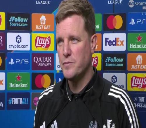 在客场2-7不敌巴萨,总比分3-8无缘欧冠八强的赛后,纽卡主帅埃迪-豪接受了TNT体育的采访。